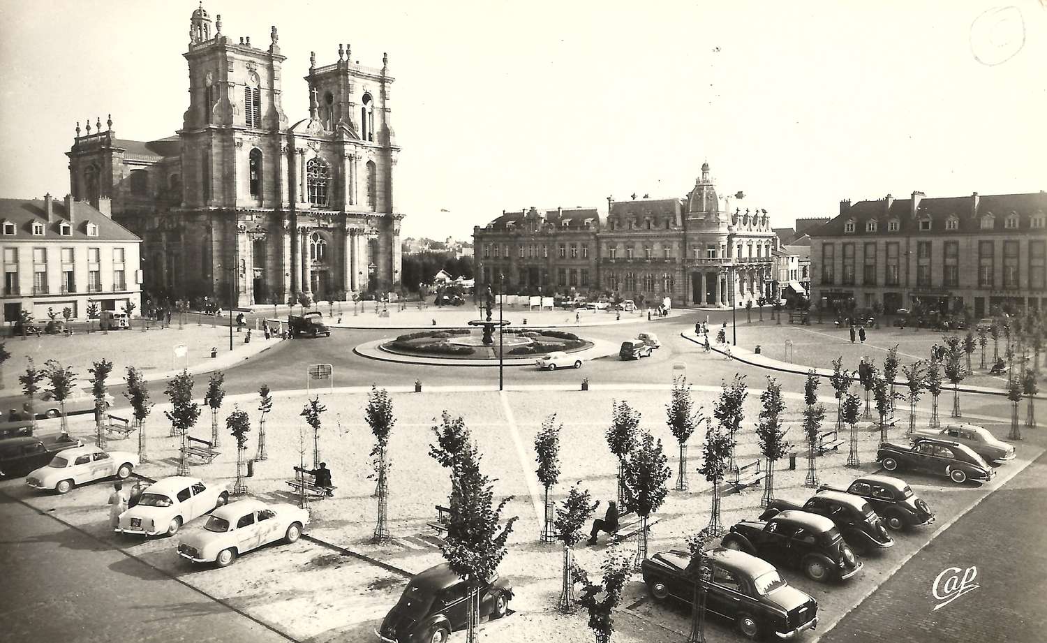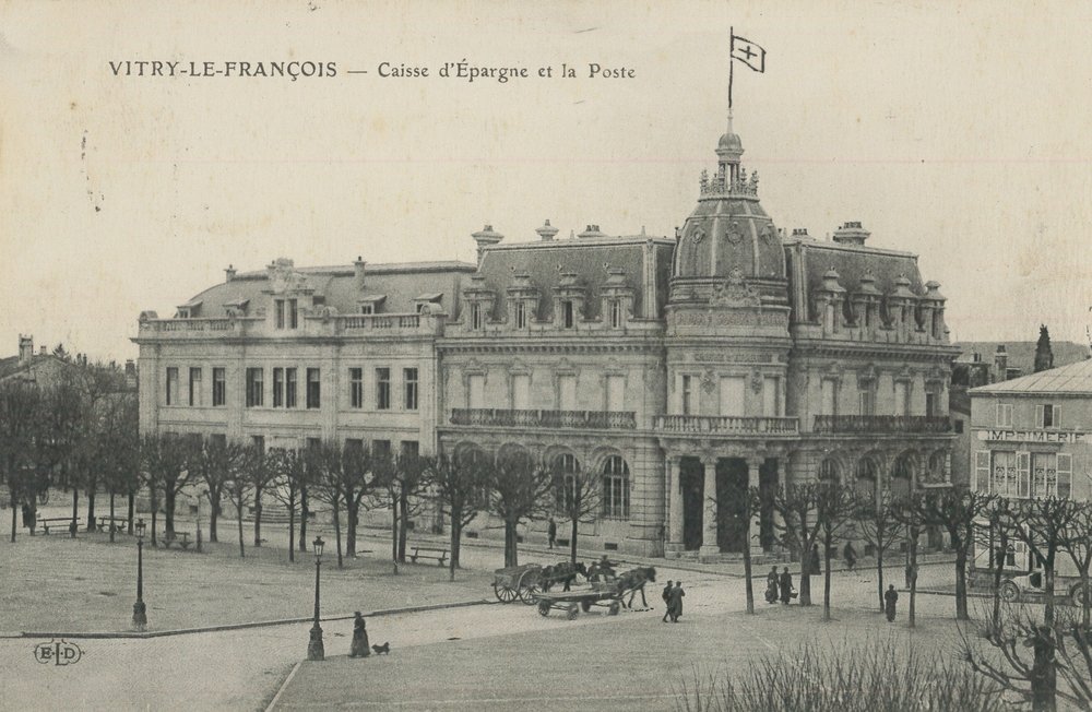 Vue de la caisse d'Épargne depuis les bâtiments ceinturant la Place d'Armes.