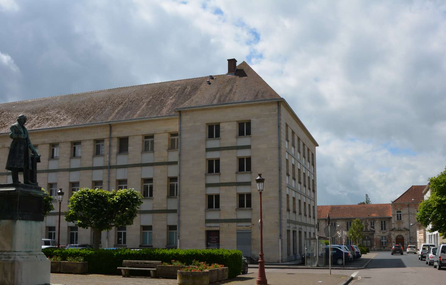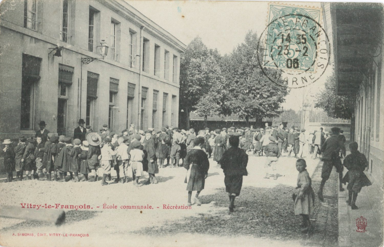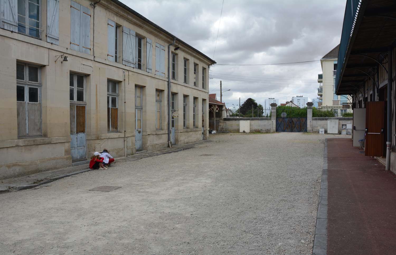 Vue depuis l'intérieur de l'école communale des Garçons - récréation dans les bâtiments toujours présents constituant l'actuel Espace Paul Bert